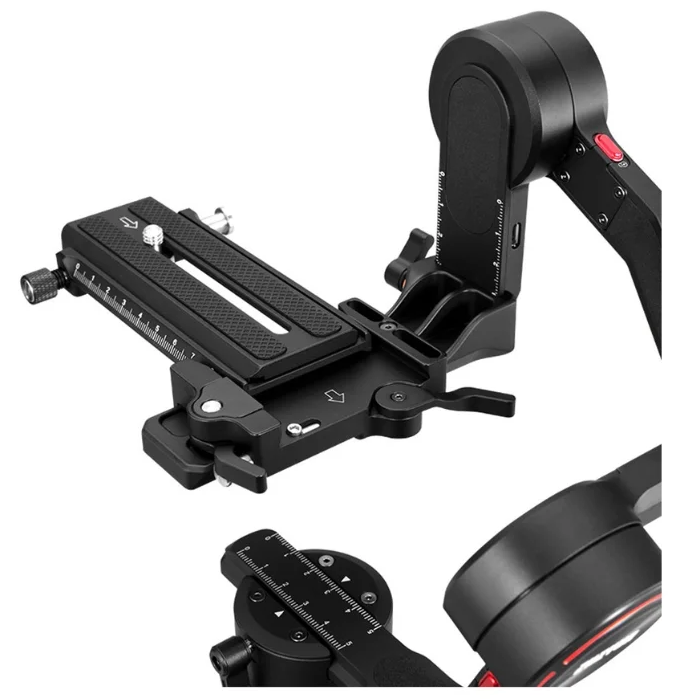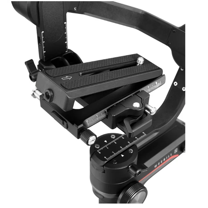 Стабилизатор WEEBILL-S совместим с быстросъемными площадками Manfrotto/Arca-Swiss, что позволяет быстро установить/снять оборудование без необходимости проводить пере-балансировку. Обновленный механизм замка фиксатора площадки позволяет оперативно отбалансировать каждую ось и аккуратно зафисировать технику.