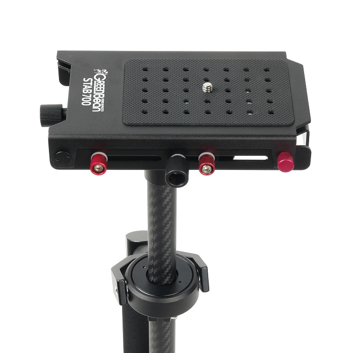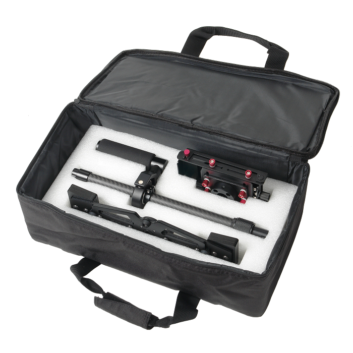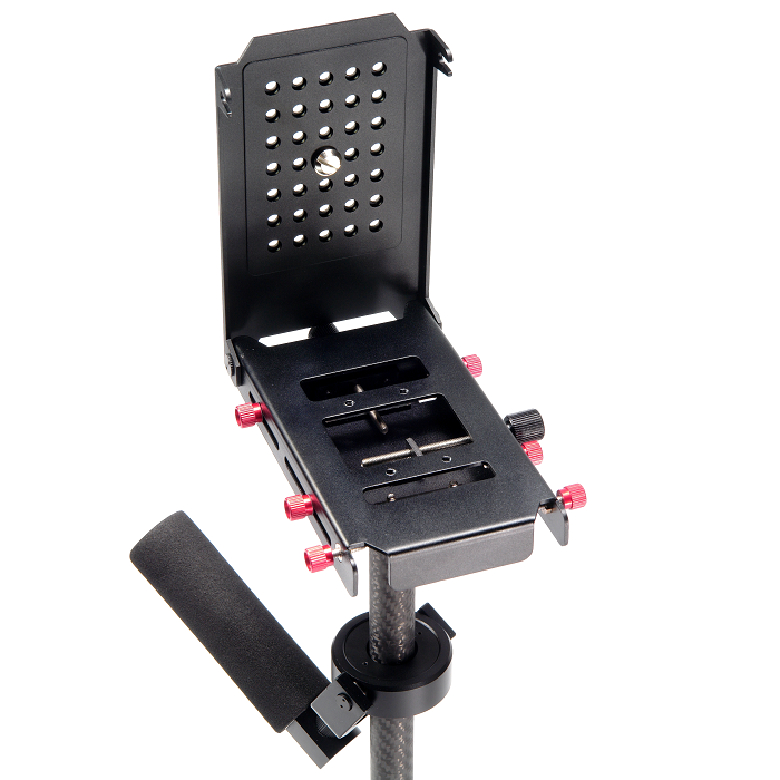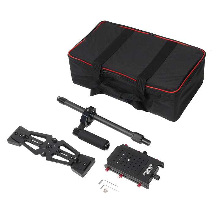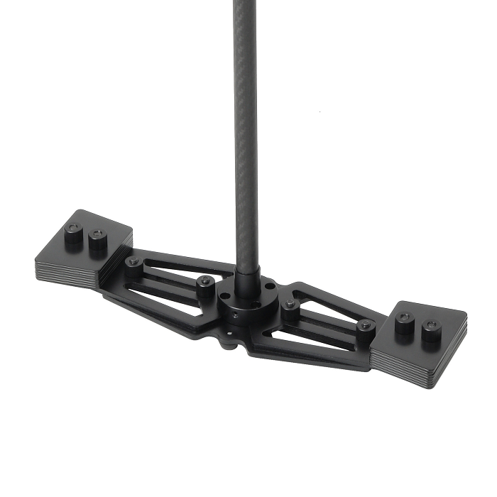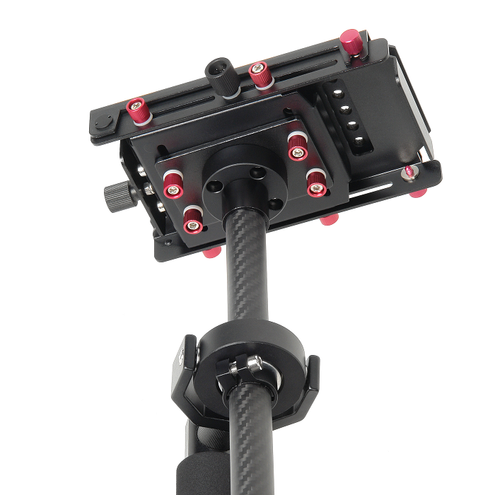 Карбоновая штанга диаметром 20 мм и прочные механизмы сделают работу с этим стабилизатором надежной и удобной. Раздвигающаяся нижняя база стабилизатора с 16 грузами-противовесами, общим весом 780 гр., позволит настроить динамическое равновесие. В основании ручки предусмотрено отверстие диаметром 5/8'', это позволит установить стабилизатор на стойку для настройки баланса системы, использовать «жилет оператора» или упор для запястья.