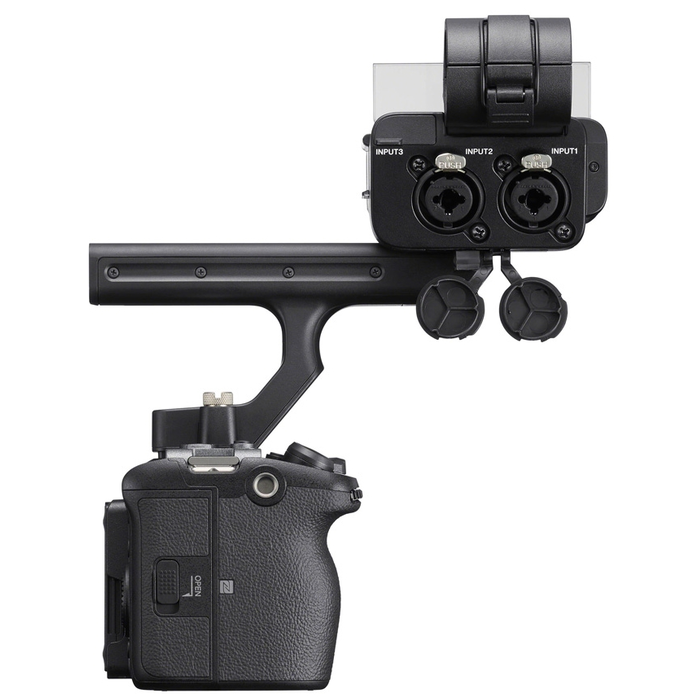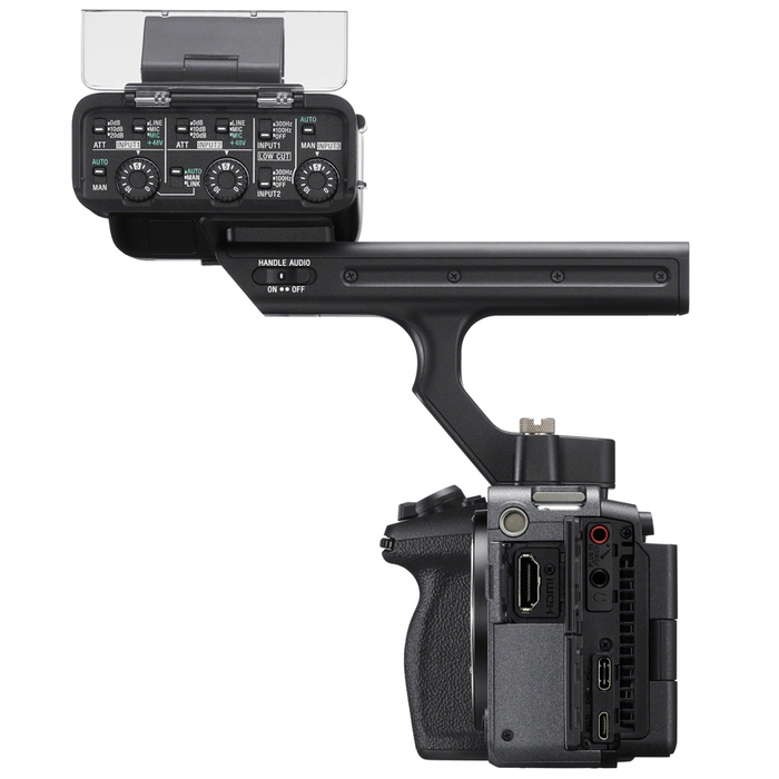 При съемке можно использовать не только встроенный микрофон, но и различные профессиональные устройства. Подключить их можно через полноразмерный разъем XLR, расположенный на ручке, цифровой аудиоинтерфейс и мультиинтерфейсный разъем. Можно выбрать три формата записи, включая 24-битный 4-канальный. Цифровая звукозапись также возможна при подключении цифрового микрофона, например модели ECM-B1M, к камере без ручки.