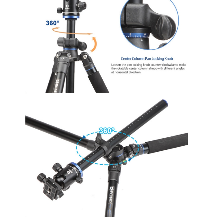 Компактный штатив Benro серии Go Plus Travel для путешествующих фотографов с универсальной центральной колонной и шаровой головой.