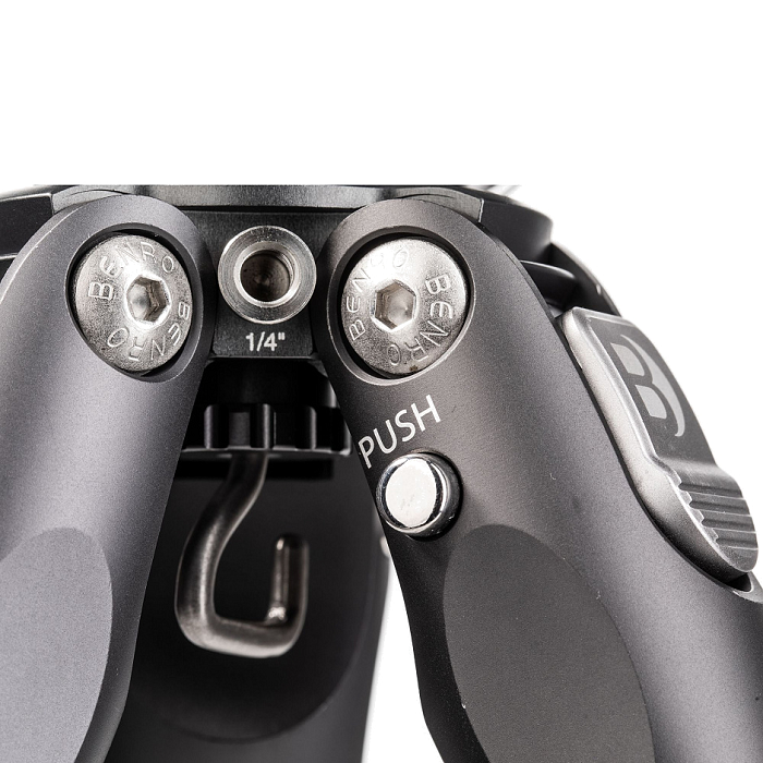Усиленный магниевый хаб обеспечивает максимальную стабильность штатива. Установочный винт 3/8 дюйма, одним нажатием винт отпускается и открывает винт ¼ дюйма. Таким образом, на штатив вы можете установить любую голову. Для установки дополнительного оборудования (свет, монитор, микрофон и т.п.), на хабе имеются тир разъема ¼ дюйма.