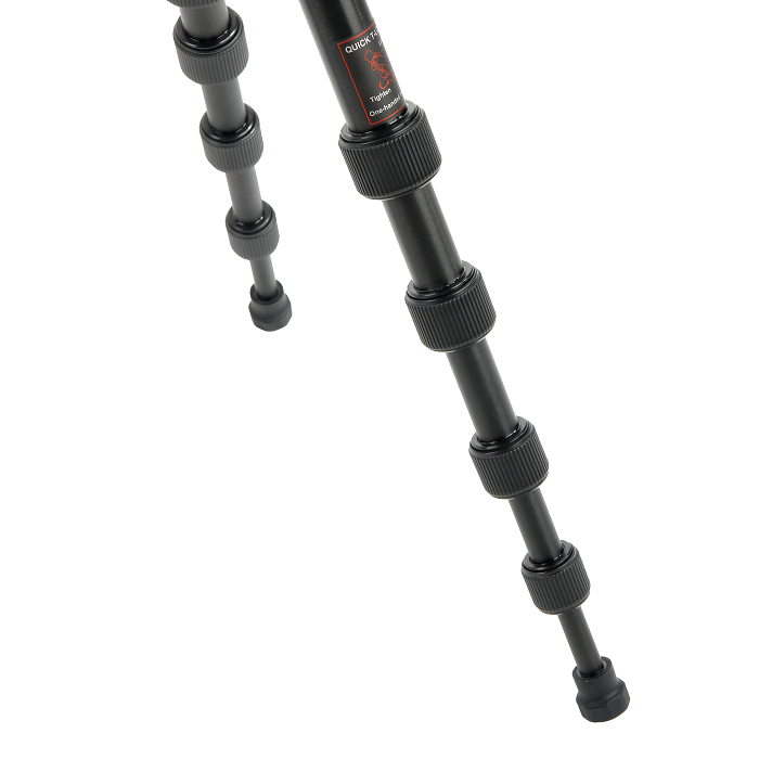 Селекторы угла расстановки ног позволяют зафиксировать каждую ногу под любым из трех заданных углов независимо друг от друга, это обеспечивает большую гибкость для позиционирования камеры в сложных условиях. Фиксация ног штатива под разным углом дает возможность использовать в качестве опоры ступени, камни и другие сложные поверхности, а также проводить съемку с нижней точки. Цанговые зажимы надежно соединяют между собой 5 секций ног.