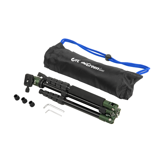 Falcon Eyes Green Line 1443 BHS-8 – легкий алюминиевый штатив для камер весом до 8 кг, вес штатива с шаровой головкой составляет 1,2 кг. Максимальная рабочая высота 1443 мм. Подойдет для тех, кому нужен компактный в сложенном виде высокий штатив с хорошей грузоподъемностью. Благодаря механизму обратного складывания ног и телескопической центральной колонне, штатив в сложенном виде помещается в сумку длиной 340 мм.