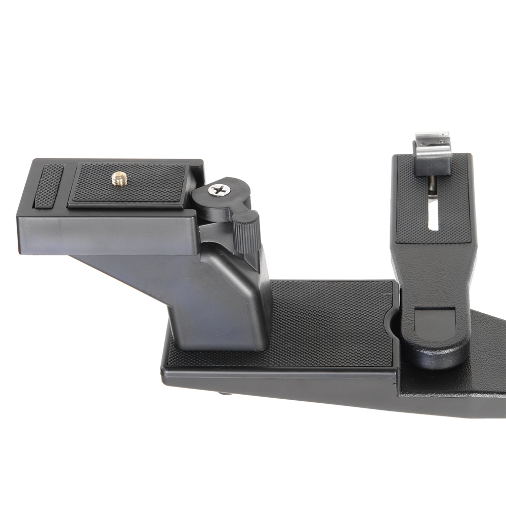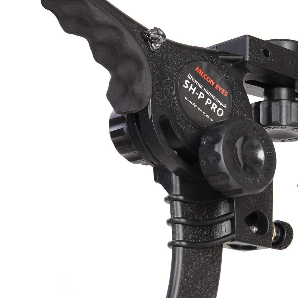 В штативе имеются два посадочных места для установки конструкции на стойку с наконечником 5/8 дюйма (с зажимными винтами и бронзовыми вставками). В комплекте — широкий, мягкий ремень с пластиковым карабином.