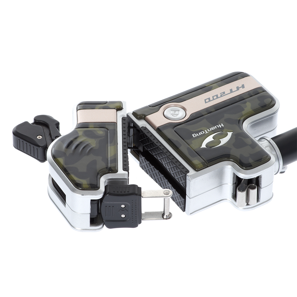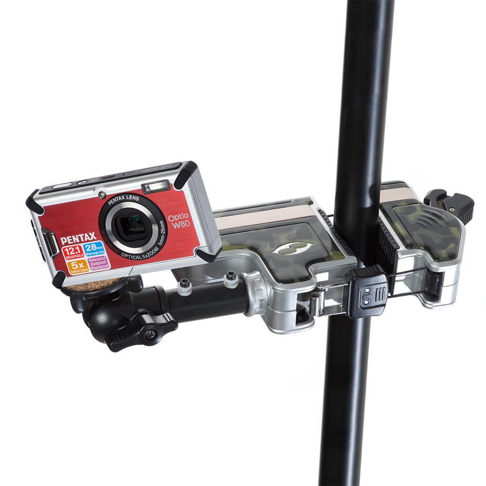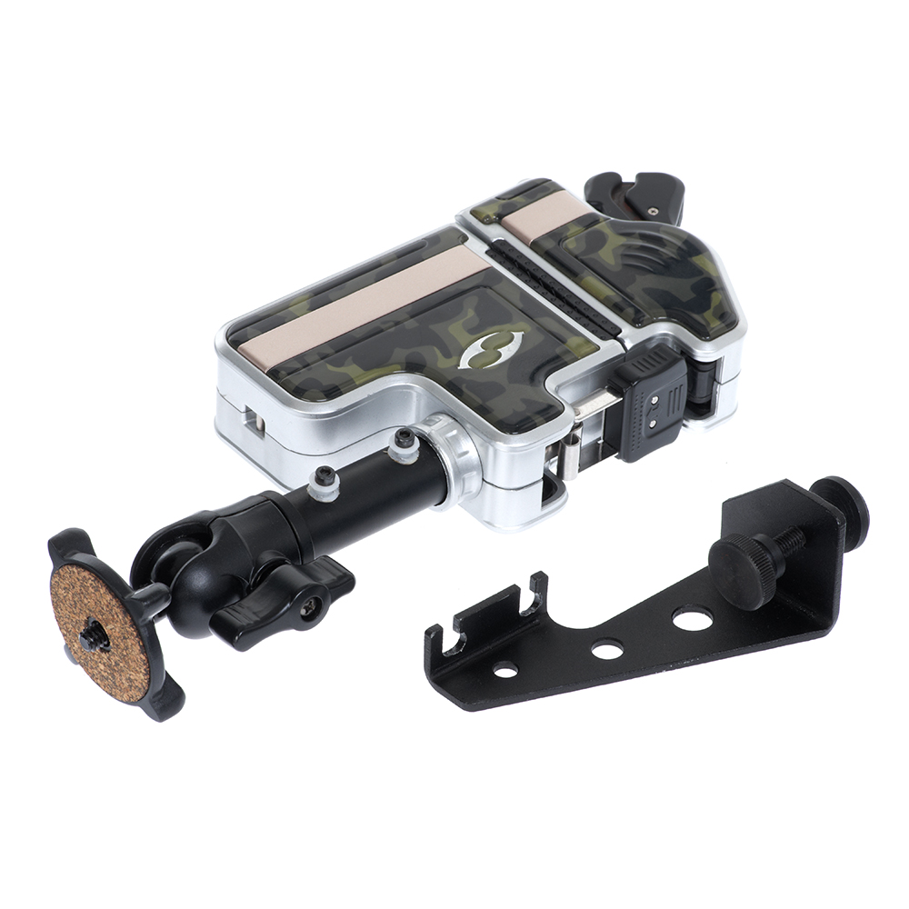 Максимальная рабочая нагрузка — 2 кг. Конструкция струбцины позволяет установить её на предметы диаметром до 280 мм. Все каркасные и несущие части изготовлены из прочных коррозионно-устойчивых алюминиевых сплавов, зажимные тросы из высококачественного нейлона, корпус из ударопрочного пластика.
