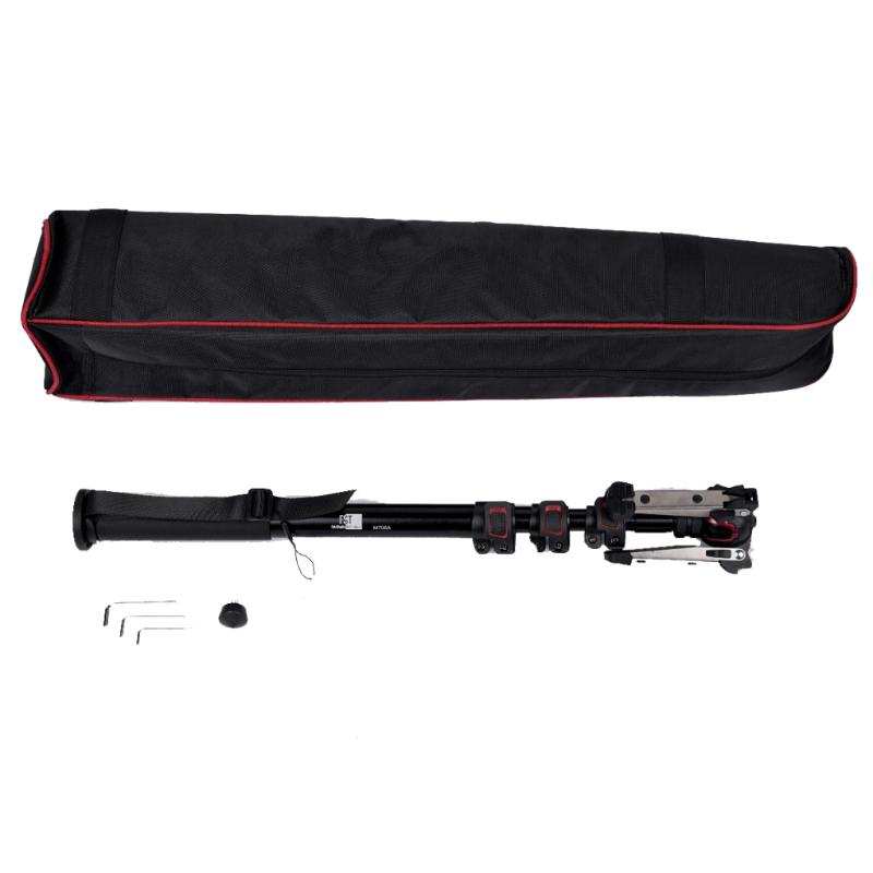 Жидкостная съемная база со сферическим креплением , тремя складывающимися ножками и фиксатором позволит Вам вести плавную съемку по всем направлениям , сильно расширяя возможности съемки. Усовершенствованная система клипс-зажимов монопода надежно фиксирует секции по все длине, позволяя выбирать необходимую для съемки высоту. Прорезиненная накладка на верхней секции специально сделана для удобства при работе с моноподом в различных температурных условиях. Изготовлен монопод из высококачественного алюминиевого сплава.