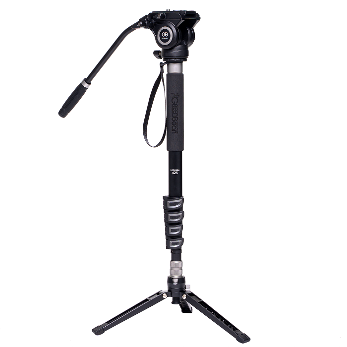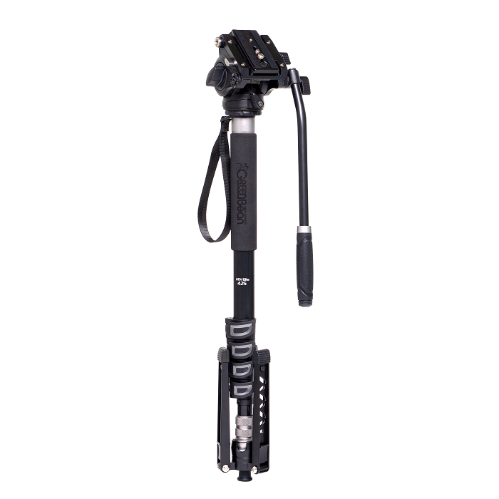 GreenBean HDV Elite 425 – алюминиевый 5-секционный монопод со съёмной видеоголовкой (с жидкостным демпфированием и контрбалансом) предназначен для съемки камерами весом до 5 кг. Съёмное основание с шаровой головкой имеет фиксируемые углы раствора ножек, его можно использовать отдельно, как настольный штатив для фото/видеосъемки. В сочетании с возможностью плавного панорамирования жидкостной видеоголовки монопод позволяет оператору снимать качественное видео даже в неблагоприятных условиях.