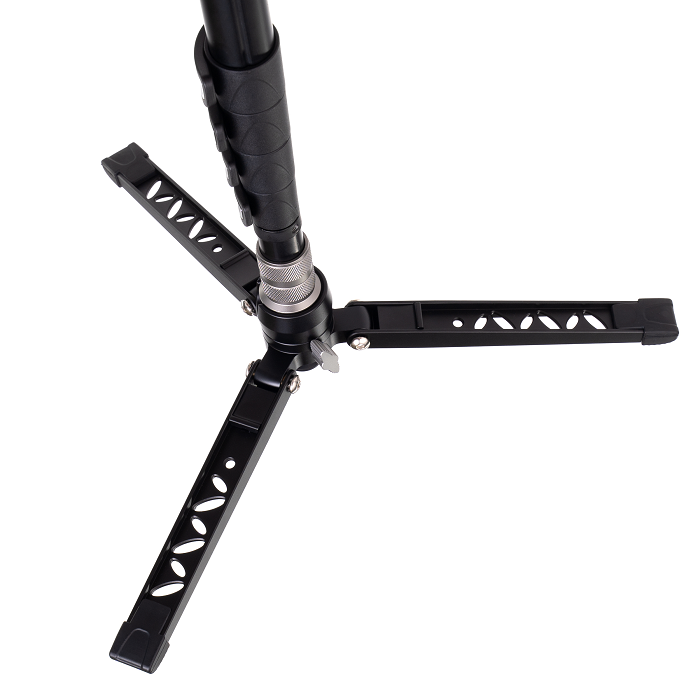Телескопические секции монопода изготавливаются из легких и прочных трубок диаметра 32 / 29/ 27/ 23/ 20 мм из авиационного алюминия. Пять выдвижных секций обеспечивают максимальную высоту 1710 мм и длину устройства всего 645 мм в сложенном виде.