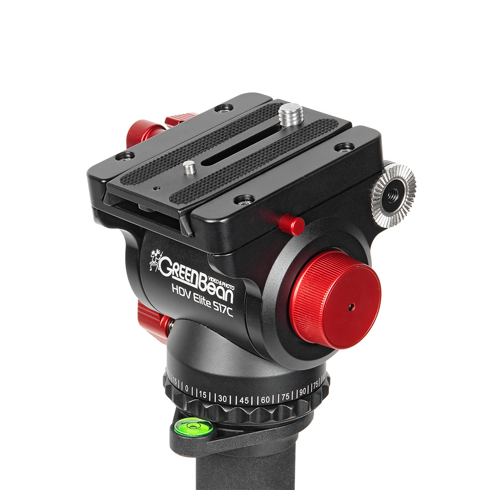 Жидкостная видеоголовка изготовлена из алюминиево-магниевого сплава, оборудована телескопической рукояткой, пузырьковым уровнем и быстросъемной площадкой с резиновыми противоскользящими накладками для установки камеры. Размер быстросъёмной площадки (стандарт Манфротто) — 50 х 90 мм.