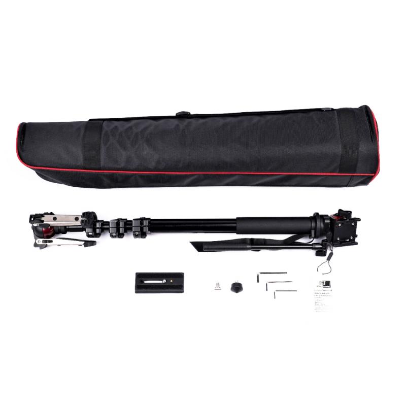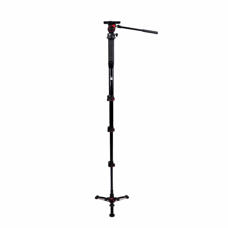 Жидкостная съемная база со сферическим креплением , тремя складывающимися ножками и фиксатором позволит Вам вести плавную съемку по всем направлениям , сильно расширяя возможности съемки. Усовершенствованная система клипс-зажимов монопода надежно фиксирует секции по все длине, позволяя выбирать необходимую для съемки высоту. Прорезиненная накладка на верхней секции специально сделана для удобства при работе с моноподом в различных температурных условиях. Изготовлен монопод из высококачественного алюминиевого сплава.