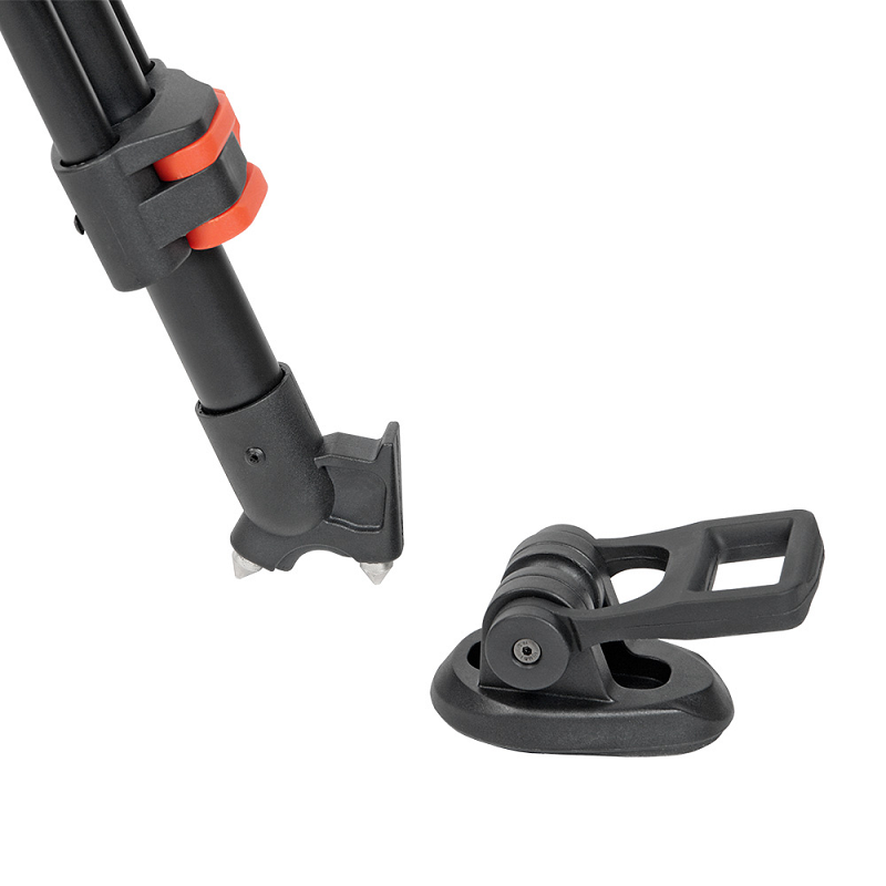 На концах штативных ног размещены парные шипы, на которые надеваются резиновые "башмаки". Таким образом, можно выбрать необходимый тип опоры для различных условий съемки. Шипы используются вне помещений, например для устойчивости на грунте или на льду, а резиновые опоры обеспечивают отличное сцепление на скользких и гладких поверхностях для защиты поверхности пола от царапин и повреждений.