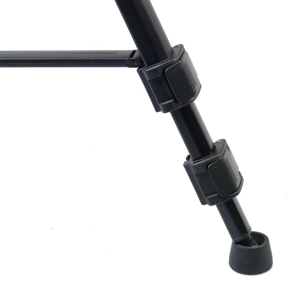 Трехсекционные ноги с верхней растяжкой, прочно соединяются между собой клипсовыми зажимами. Резиновые опоры ног на шаровом основании, для устойчивости на неровных поверхностях.