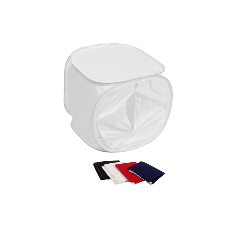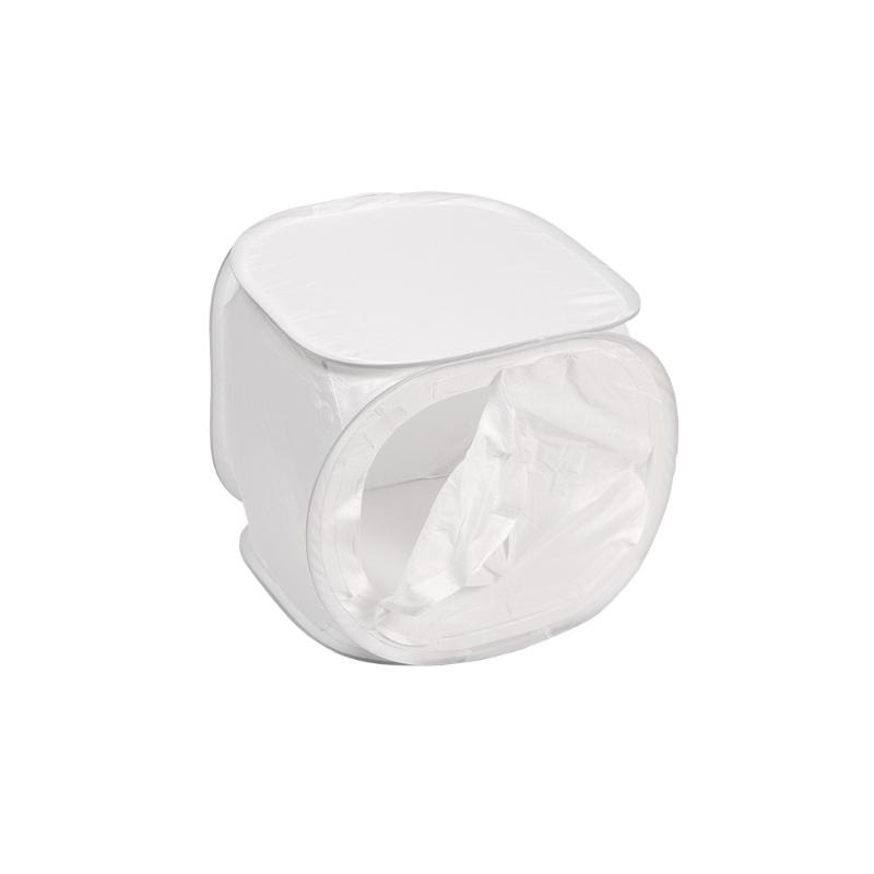 Складной фотобокс Godox DF-01 предназначен для предметной и макросъемки, размер фотобокса 40х40х40 см. Материал фотобокса позволяет получить равномерное мягкое освещение, а изменение угла подсветки сделает возможным формирование любого светотеневого рисунка.Стенки фотобокса выполнены из светопропускающей синтетической ткани, каркасом являются металлические пружины. Съёмная передняя стенка фотобокса с прорезью для объектива. Фотобокс быстро разбирается и имеет небольшой вес, что делает его удобным для использования не только в студии, но и для выездных съемок.